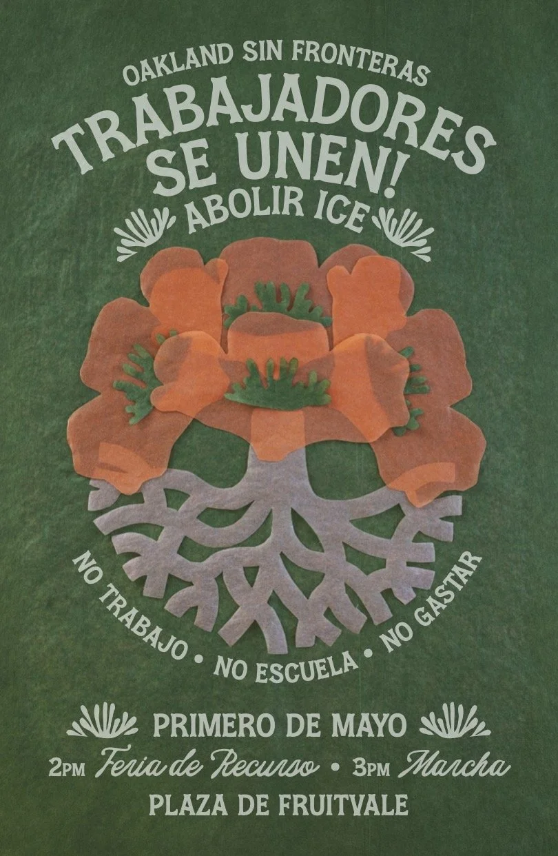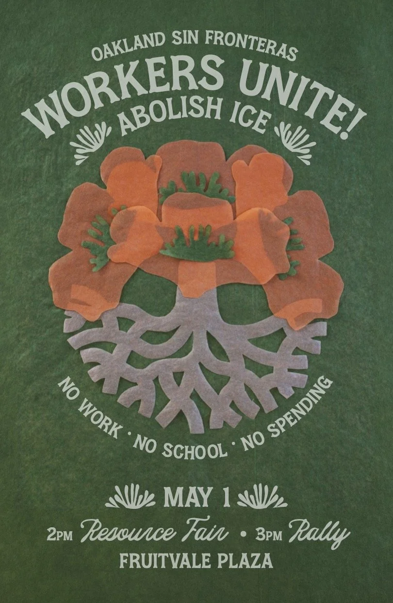 Workers’ and immigrants’ rights are under attack—stand up and fight back! Join us May 1st at Fruitvale Plaza In Oakland, CA for International Workers Day! While the U.S. refuses to recognize May 1st as International Workers’ Day, our communities do, and they stand in solidarity with millions worldwide, fighting against the exploitation of workers and the oppression of peoples, lands, and nations. This year, we continue that tradition with even greater urgency, as immigrants, workers, trans folks and marginalized communities face escalating attacks and racist policies that strip away rights and protections.